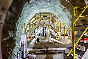 The Bever-Scuol-Tarasp railway line is a narrow metre gauge railway. Built at the beginning of the 20th century, it is operated by the Rhaetian Railway. This line includes the Sasslatsch connecting tunnel between Susch and Lavin, which was renovated from 2016 to June 2017 with a new "tunnel-in-a-tunnel" method. The old vault walling was excavated, the tunnel was widened, re-anchored and fixed with shotcrete. The tunnel was then lined with sealed precast concrete elements and filled in with gravel.